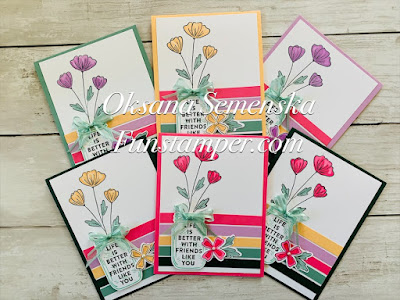 I used all new colors when creating a swap featuring Flowers of friendship bundle. Here is few samples. This one uses Fresh Freesia: